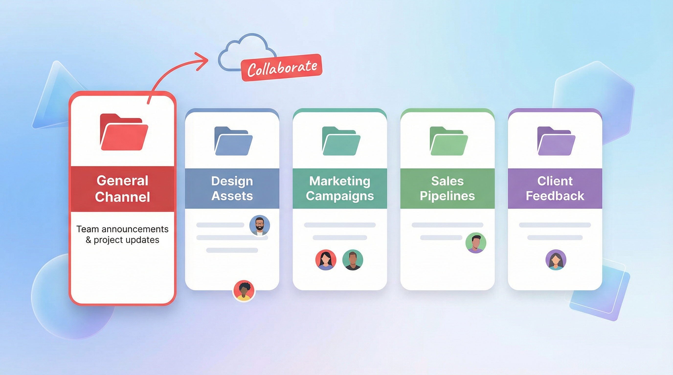Dedizierte Bereiche für Kommunikation und Zusammenarbeit – offen, privat oder geteilt.